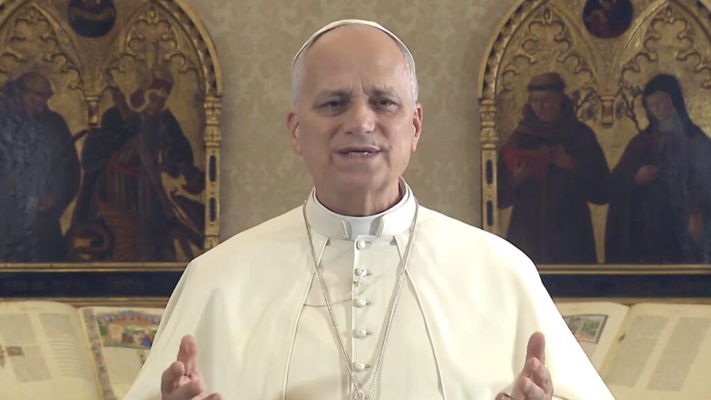 El Papa León XIV aparece en una captura de pantalla mientras dirige un mensaje en video a los jóvenes católicos que participan en SEEK 2026, el más reciente de varios mensajes grabados que ha dirigido a la juventud de Estados Unidos desde que fue elegido pontífice. El encuentro anual —que se celebra del 1 al 5 de enero en sedes de Columbus, Ohio; Denver; y Fort Worth, Texas— ha reunido a unos 26.000 participantes para charlas y talleres centrados en el encuentro con Cristo, con un programa que incluye Misa diaria, adoración eucarística, el sacramento de la reconciliación y momentos de fraternidad. (Captura de pantalla de OSV News/Vatican News)