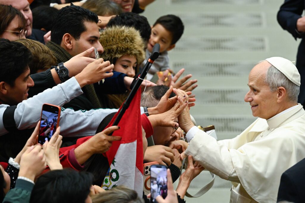 El Papa León XIV saluda a los fieles al finalizar su audiencia general semanal en el Aula Pablo VI del Vaticano, el 14 de enero de 2026. (Foto de CNS/Vatican Media)